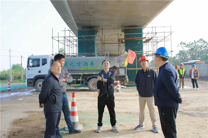 5月27日,市公路事業(yè)發(fā)展中心工程科科長(zhǎng)張紅雁、養(yǎng)護(hù)科科長(zhǎng)趙志偉及總監(jiān)劉克輝一行至244線G209跨線橋改造項(xiàng)目,現(xiàn)場(chǎng)查看橋臺(tái)改造鋼結(jié)構(gòu)支撐、路基加固段土方填筑施工、了解空心板預(yù)制情況,要求現(xiàn)場(chǎng)施工把控施工質(zhì)量,同時(shí)嚴(yán)格按照安全作業(yè)規(guī)范,提高安全意識(shí)、強(qiáng)化安全區(qū)布置、保障作業(yè)安全。
