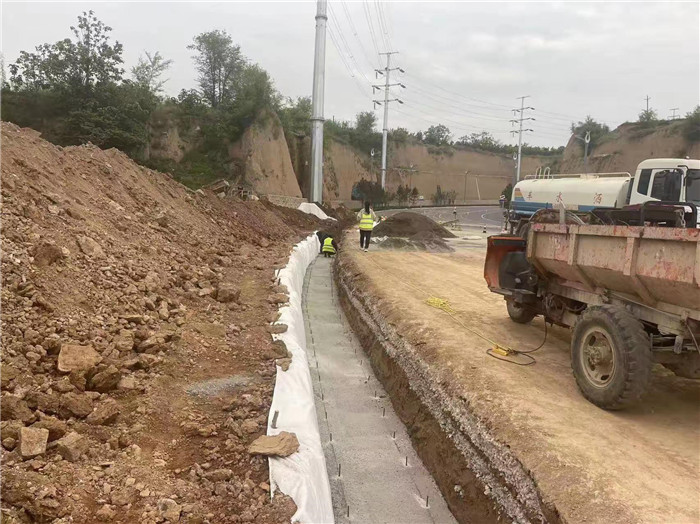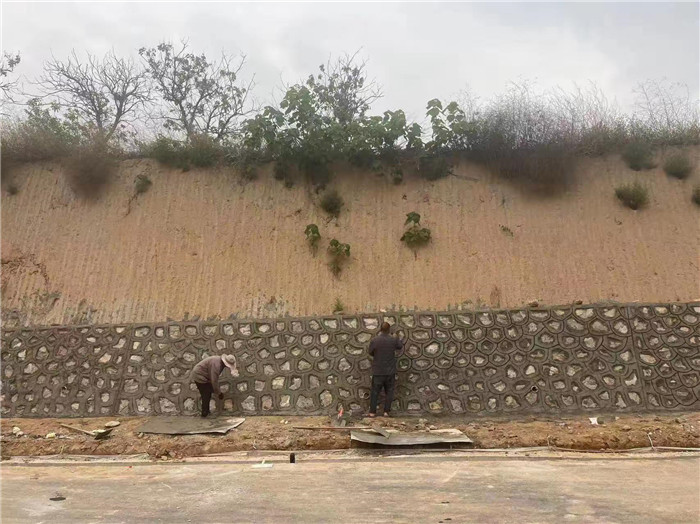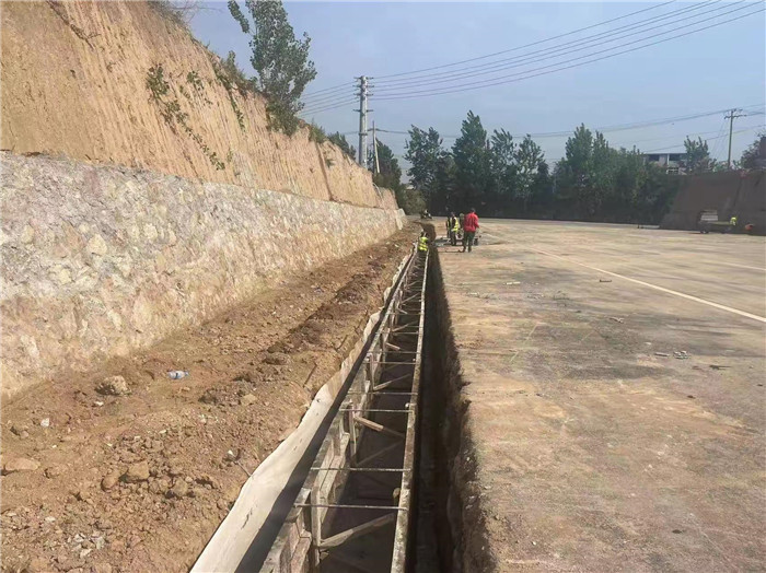 三號(hào)支線護(hù)腳墻勾縫、邊溝施工中。