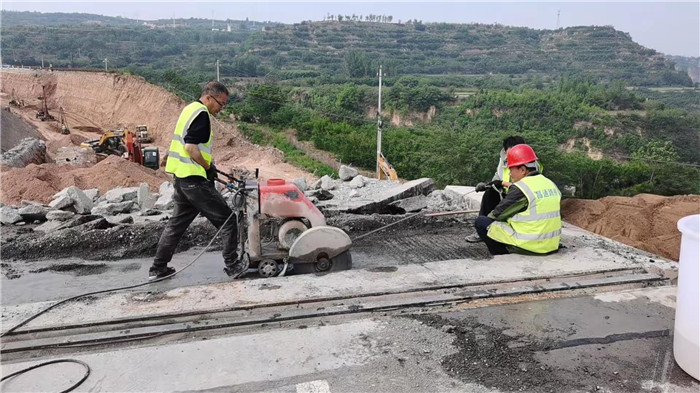 K10+324—K10+400路基灰土樁加固段施工,市區(qū)向橋頭搭板切割。