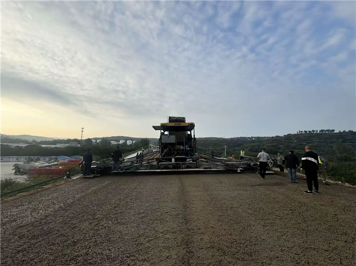三門峽西收費站3號車道第二層墊層澆筑中