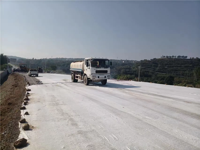 市區(qū)向路基水穩(wěn)面灑水養(yǎng)生。